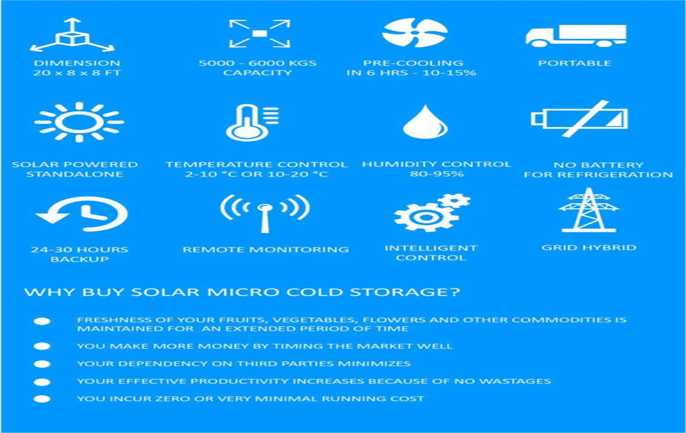 Powered by daytime charging, it ensures 24/7 freshness for your produce. The Zero Harvest Cold Room is the ultimate storage solution.
